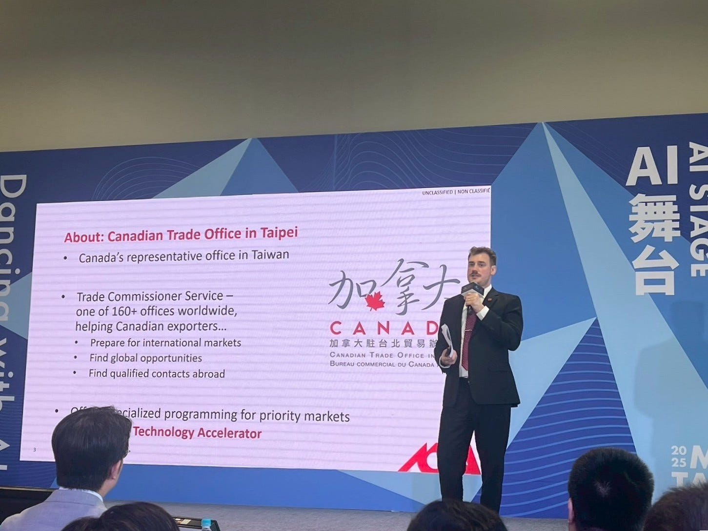 加拿大駐台辦事處副處長 Jordan Turley 表示,加拿大在 AI、網路安全、Fintech 與生命科學等領域研發實力雄厚,但在硬體製造與產品化上相對薄弱。因此,台加合作可從三個面向開展互補優勢: