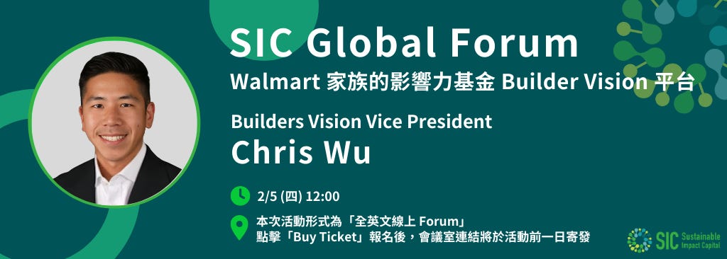【SIC Global Forum】Chris Wu:Walmart 家族的影響力基金 Builder Vision 平台