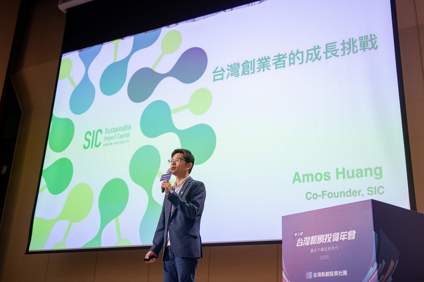 SIC 永續影響力投資很榮幸連續三年作為年會支持夥伴參與台灣新創投資年會,由共同創辦人黃俊傑 Amos Huang 受邀分享,以「台灣創業者的成長挑戰」為題,深入剖析台灣新創在邁向國際時所面臨的五大結構性落差,並分享他從創業、擴張到投資的十五年實戰觀察與深刻反思。