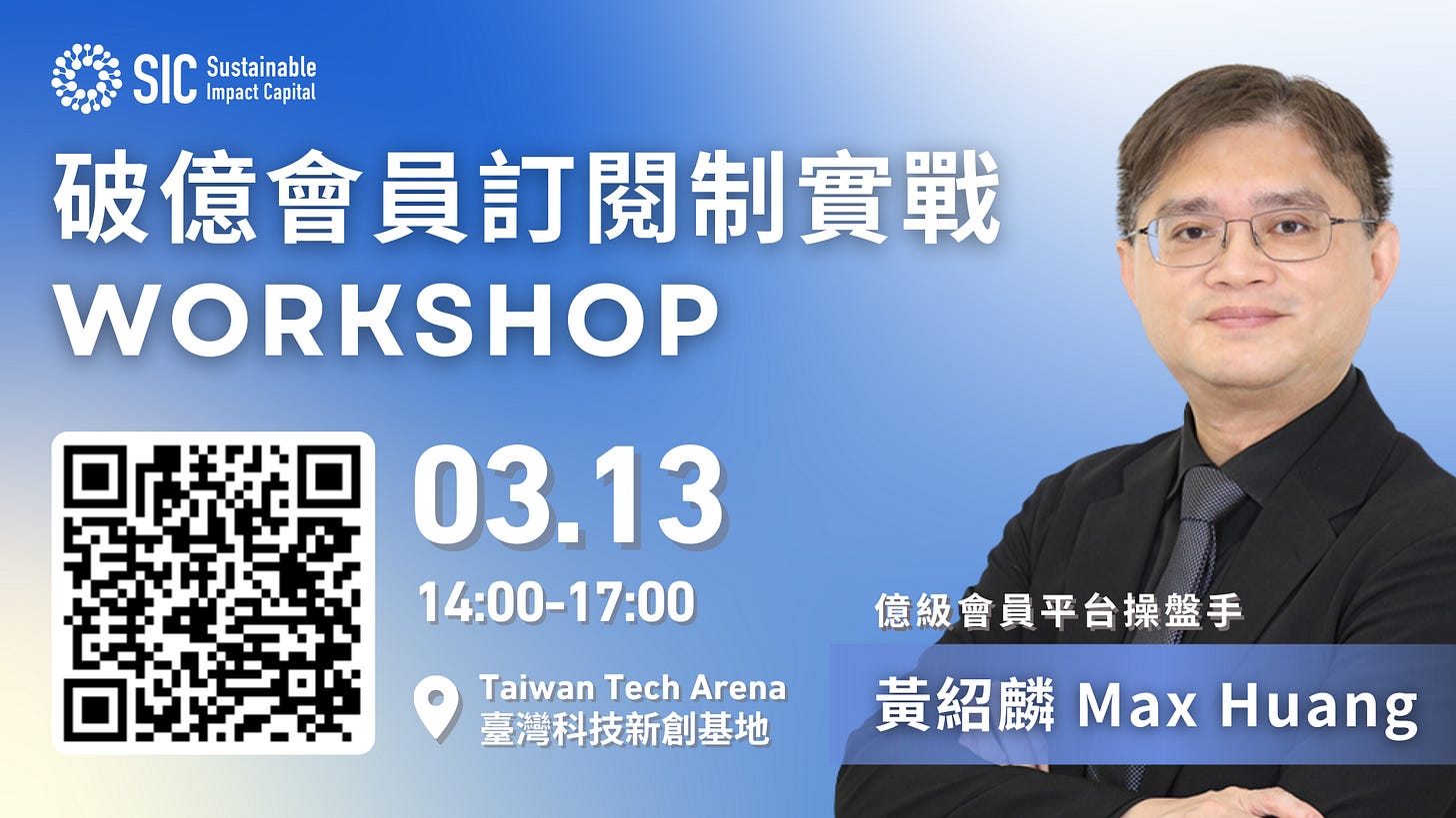 【黃紹麟 Max|破億會員訂閱制實戰 Workshop】